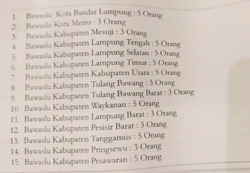 Ini kuota kebutuhan anggota Bawaslu :