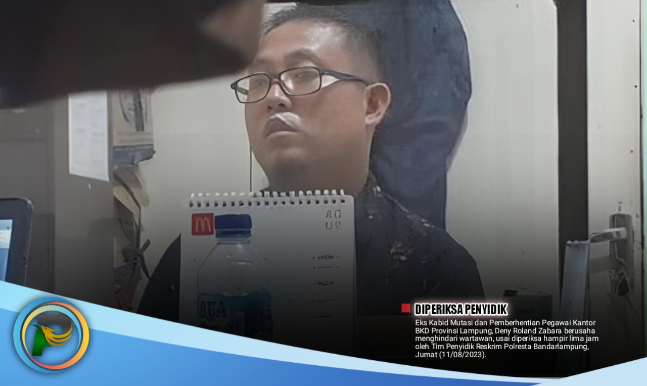psiaceh.or.id/ – Eks Kabid Mutasi dan Pemberhentian Pegawai Kantor BKD Provinsi Lampung, Deny Roland Zabara berusaha menghindari wartawan, usai diperiksa hampir lima jam oleh Tim Penyidik Reskrim Polresta Bandarlampung, Jumat (11/08/2023).